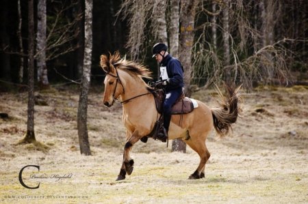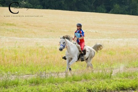 Ваш старт. Все приготовления сделаны; теперь настала очередь испытания внимания и сил! Вы не должны стоять в стартовых створах или на линии старта - часто лучше просто шагать рядом, пока стартер начнет обратный отсчет от десяти. Начните движение ровным, не заторопленным галопом и, держа в голове план, будьте готовы быстро изменить его, если потребуется: например, вы можете преодолеть препятствия по альтернативному варианту, если не все складывается так, как планировалось, или обнаружить, что расчет прохождения маршрута пешком не работает, и довериться интуиции. Постоянный ритм безопаснее и эффективнее, чем резкое ускорение и торможение в случае проблем. Не подчиняйтесь инстинкту валиться вперед, сидите ровно и перенесите вес к переду лошади. Прижмите шенкеля, чтобы поддержать импульс. Умная и опытная лошадка под хорошим всадником часто сама выберется из трудной ситуации, но вмешательство со стороны человека или животного в неподходящий момент может быть опасным. Приспособьтесь к условиям грунта. Например, на скользком или мокром грунте вам нужно привести лошадь в сбор, а сухой и вязкий грунт очень тяжел для ног лошади, она устанет быстрее. Всё время управляйте животным. Расслабиться и потерять контроль очень легко, но лошадь может последовать вашему примеру и совершить ошибку. Не останавливайтесь резко, чтобы не повредить сухожилия. Не благодарите лошадь похлопываем во время маршрута. Вы можете упасть или потерять контакт. Когда вы прошли маршрут, спешьтесь, не забудьте ослабить подпругу(!), отшагайте минуты четыре - и уже тогда похвалите лошадь как следует.