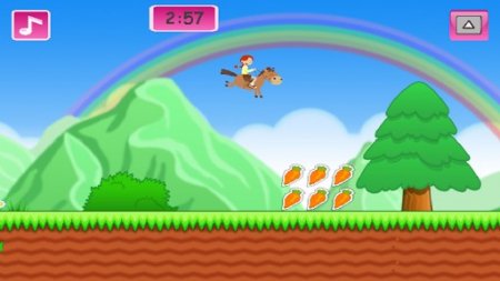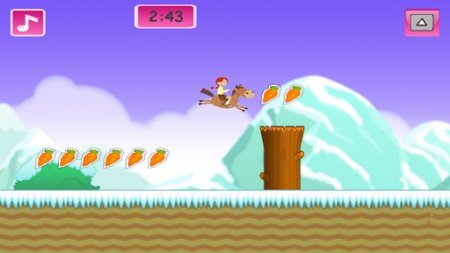 В игре «Бегущая лошадка» есть несколько уровней. Игра предназначена для всей семьи.