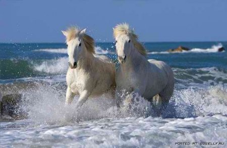 Всем известно, что фризы бывают только вороными. Но дикие лошади камаргу бывают только светло-серой (за редким исключением) масти. Часто на равнинах можно увидеть табун низкорослых белых лошадей.