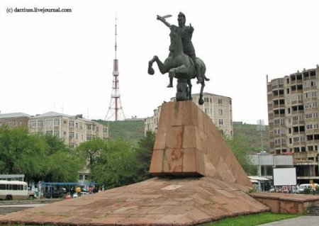 Средневековый полководец Вардан Мамиконян скачет от Ереванской телебашни навстречу своей гибели от рук проклятых Сасанидов.