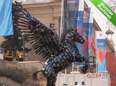 На выставке Mobile World Congress 2012, проходившей в Барселоне, возле входа посетителей встречала огромная скульптура лошади - пегаса. Самым необычным в этой скульптуре являются не ее относительно большие размеры, пять целых восемь десятых метров в высоту и с размахом крыльев пять метров, а то, что ее поверхность состоит из смартфонов, которых ушло на это дело более трёх с половиной тысяч штук.