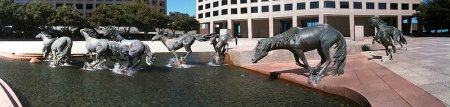 Они изображены бегущими по текущей воде, с фонтанами, создающими эффект брызг, вздымаемых копытами. Основная идея скульптуры — передать движущую силу, инициативу и раскрепощённый дух, которые были присущи Техасу в период его освоения.