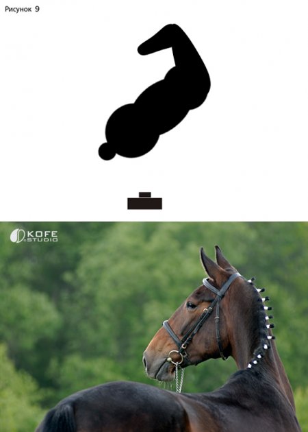 Думаю, в дальнейших обзорах я еще вернусь к этой теме, а пока хочу предложить вам варианты выигрышного положения лошадей на снимке, схематичное изображение сверху, место вашего объектива и результат.