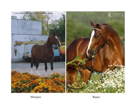 Итак, во-первых, не каждый КСК отличается эстетическим стилем, если вам повезло - это отлично, а если нет? Тогда стоит обратить свое внимание на местность в округе и выбрать наиболее подходящий вариант для ваших съемок. Из головы лошади не должны торчать никакие палки, за спиной открываться вид на часть крыши, а вся морда не должна плавать среди островков тени. Правильно расположить лошадь - еще один шаг к успеху.