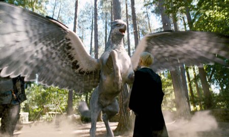 В знаменитой серии книг, повествующей о приключениях мальчика со шрамом на лбу также встречается гиппогриф, которого спасает Гарри, а тот в свою очередь помогает Поттеру вместе с Гермионой спасти его крестного. Да, я говорю именно о Клювокрыле.