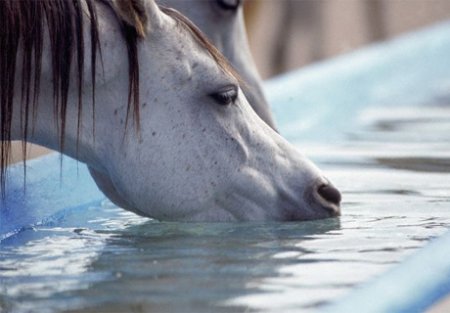5 Постоянный доступ к чистой пресной воде. Взрослая лошадь на 62-68% состоит из воды, поэтому ее суточная потребность в жидкости составляет примерно 35 литров (летом – больше). Благодаря достаточному питью животное поддерживает нужную температуру тела, по всему организму транспортируются питательные вещества, смазываются суставы. Кроме того, вода входит в состав слюны и пищеварительных соков. Поэтому обеспечьте постоянный доступ к воде или часто поите коня. Но только перед едой. Зимой следует подавать подогретую воду.