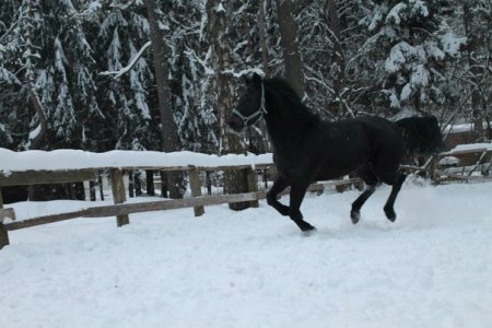 Не давайте лошади бегать по твердой перемерзшей земле, это может повредит ее ноги. Исключение составляет арена со специальным покрытием. Также опасно гулять по мокрому скользкому снегу: лошадь может поскользнуться даже, если на ней надеты специальные подковы с шипами.