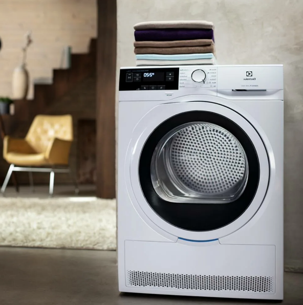 В процессе одежда проходит несколько этапов на пути к своей «сухости». Она вначале обрабатывается горячими воздушными массами, благодаря чему испаряется влага. Впоследствии лишняя влага плавно перемещается в теплообменник, охлаждается, и возвращается. В итоге белье теряет свою влагу до 90%.
