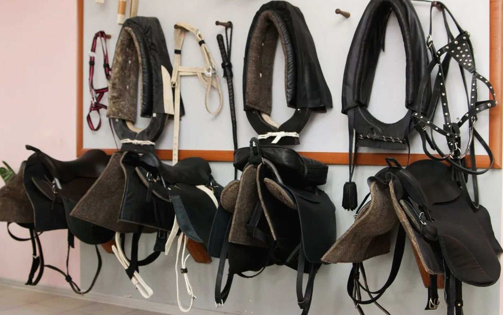 - Снаряжение для лошадей. В их числе седла, уздечки, вьючное оборудование, которое поможет обеспечить правильное положение и безопасность как для животного, так и для наездника;