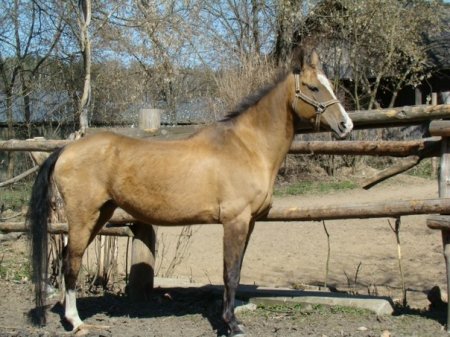 Кобылка Факма - буланая ахалтекинская кобылка, белые зада и проточина на мордочке, 1996 года рождения.