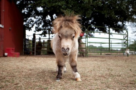 Пони из Хокинсвилла, штата Джорджия, может и меньше своих собратьев, но нисколечко от них не отличается. Она как и они любит погарцевать на скотном дворе.