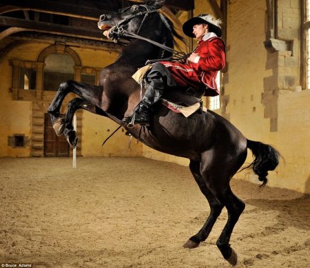 Лошади андалузской породы Альмонзор и Окл умеют, что называется, тянуть носок. В Великобритании классической школы выездки лошадей не было 300 лет. Высшая школа верховой езды – это своего рода балетная школа для лошадей. Лошадь проделывает невероятное количество различных хореографических трюков, движений и кентеров, которые называют «полет над землей».