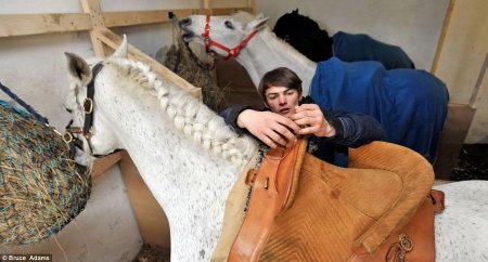 19-летний Бен Аткинсон учит 6-летнюю кобылу Окл исполнять такие движения, как «кабриоль», когда лошадь отрывает от земли все четыре копыта одновременно.