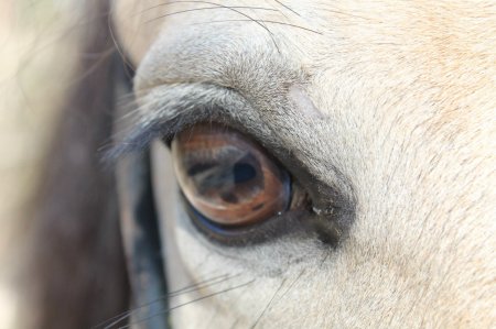 Угол зрения у лошади — почти 360 градусов. Поэтому она может увидеть все, что окружает ее и спереди, и сзади. У лошадей цветное зрение они видят хорошо. Точка схождения направления глазных осей из-за бокового расположения составляет 4 метра. Поэтому чтобы разглядеть предметы, расположенные ближе 4-х метров, лошади может повернуть свою мордочку на вас и всё равно будет вас видеть.