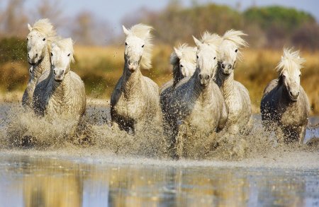 Прекрасные белые лошадки, скачущие по линии морского прибоя, очень нравятся туристам. А французы любят камаргу за то, что их можно приручить и научить работать в сельском хозяйстве. Именно по этим причинам французское правительство превратило провинцию Камарг в национальный заповедник и прикрепила к диким табунам людей, которые следят и ухаживают за лошадками.