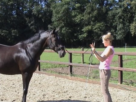 1)Хорошо бы, чтоб лошадь понимала направление, когда вы показываете рукой. Этой команде можно научить лошадь с кликером, а можно, обучая лошадь движению на корде.