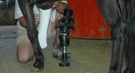 Собака, может передвигаться и на трех ногах. Но лошадь этого делать не может. Ведь лошадь не весит как собака. И трем ногам массу тела лошади не выдержать. Вес тела лошади, распределяясь на три ноги, будет продавливать кость, причиняя невыносимую боль. Тогда может быть протез? Их же делают людям, может и лошади поможет? Он возможен только в единичных случаях, когда травма небольшая и затрагивает только стопу. Тогда можно ампутировать ногу и поставить протез. Но многие переломы настолько сложны, что подгонка протеза потребует ампутации практически всей ноги.