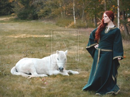 Богиня изображалась прекрасной молодой девушкой в окружении лошадей или в колеснице,запряжённой двумя-тремя конями,или же сидя верхом на скакуне,причём лошадь не скакала галопом, а шла спокойным шагом.Она также довольно часто изображалась с символами плодородия и изобилия, например с корзиной, полной плодов и зерна.Она появляется во многих легендах: несмотря на то, что дева на белой лошади едет очень медленно, самые быстрые кони не могут догнать ее, если на то нет ее воли.