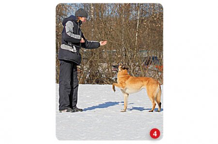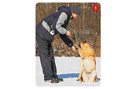 Теперь, когда пес научился по команде легко и быстро поднимать правую и левую лапы попеременно, находясь при этом перед хендлером в положении сидя, можно поставить питомца перед собой. Затем по команде «Лапа!» мы предлагаем собаке на правую руку поднять правую лапу, а по команде «Другая!» – на левую руку левую лапу. Если все получилось хорошо, можно переходить к следующему этапу обучения, если нет – вернитесь к этапу 3.