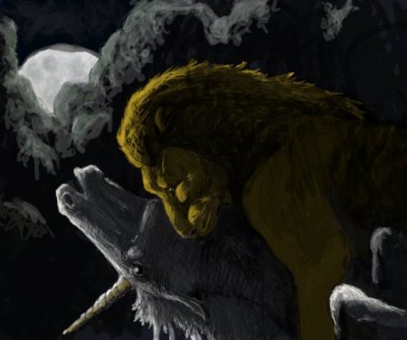 Арт Льва и Единорога в драке