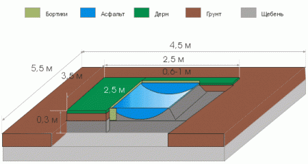 - под широтный прыжок через воду. В этом случае спереди ямы устанавливается небольшое возвышение до 30 см высотой