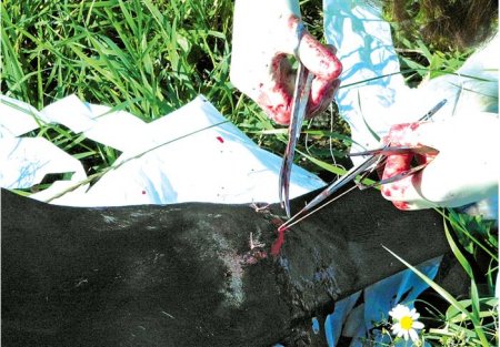 Глубокие ранения в области стенки живота всегда опасны, так как могут стать причиной перитонита, грыжи и даже выпадения внутренних органов. Промедление с вызовом ветеринара или поездкой в клинику может стоить вашей лошади жизни. Поэтому надо быстро оказать первую помощь, заключающуюся в обработке раны, а также при обширных и глубоких повреждениях сделать лошади бандаж. Для этих целей подойдет любой большой кусок чистой ткани или простынь, которую стараются как можно плотнее обернуть вокруг живота. К сожалению, при выпадении кишечника в большинстве случаев спасти лошадь редко удается, так как развивающийся при этом перитонит очень быстро переходит в эндотоксемию и тяжелейший ламинит.